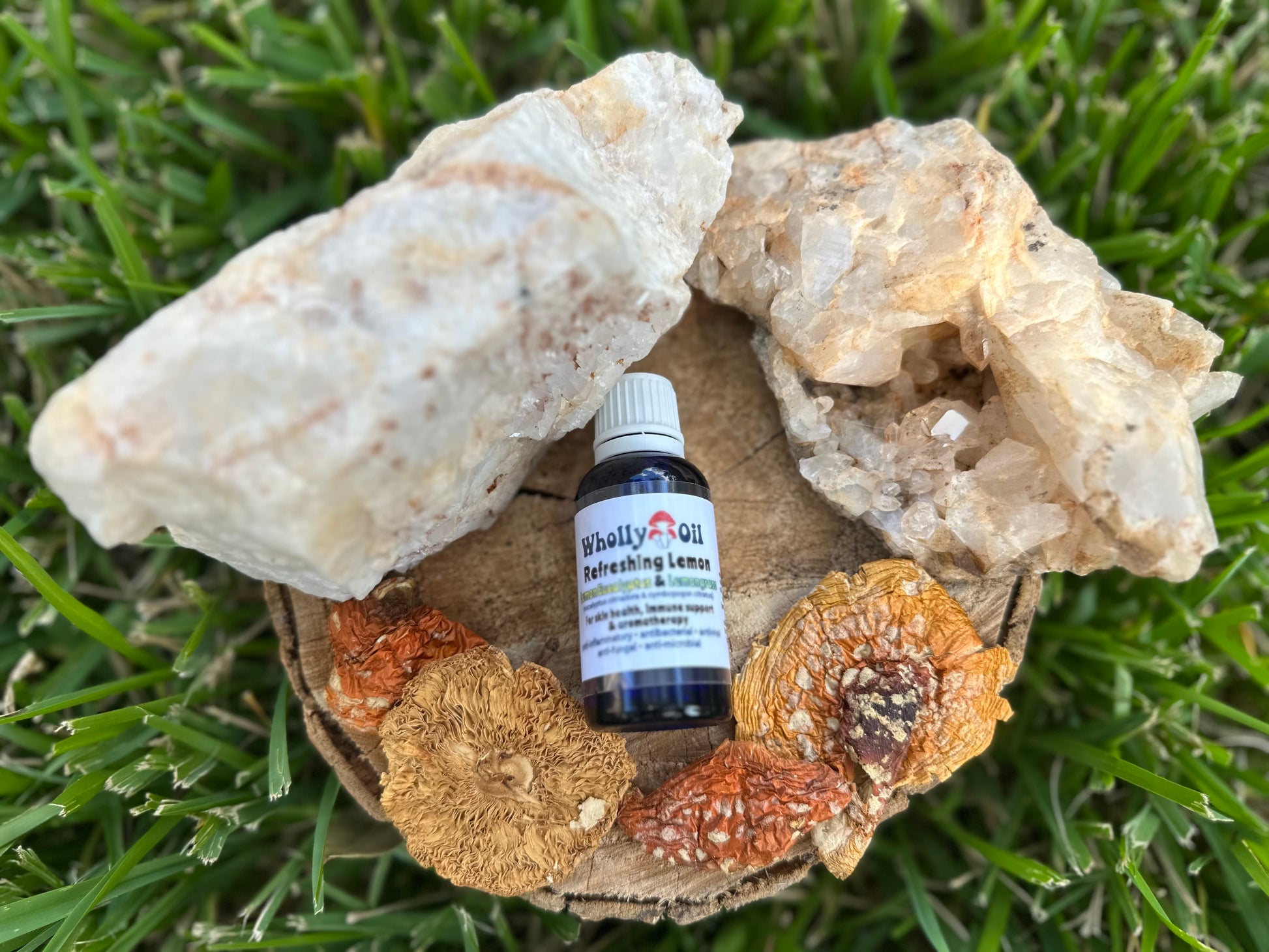 All Wholly Oil blends contain natural antimicrobial, anti-inflammatory, antibacterial, antiviral, and anti-fungal properties. Indulge in the Wholly Oil Refreshing Lemon Blend to experience the combined benefits of these powerful natural ingredients.