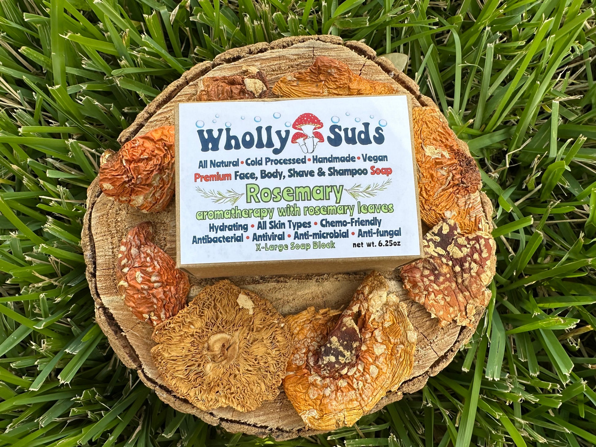 All pure, organic ingredients: Saponified olive oil & coconut oil base. Made with real plants, medicinal mushrooms, wild harvested sea vegetables and essential oils.